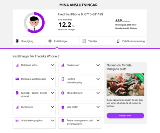 Ett nytt sätt att visa abonnemangens inställningar och tjänster